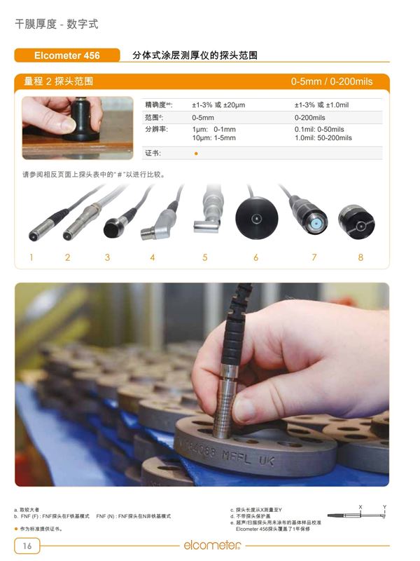 e. 扫描探头精度为 ±3% 或 ±0.02mm (0.8mil)(装有盖子),±1-3% 或 ±0.02mm (0.8mil) 不带盖子,当使用未涂层基板