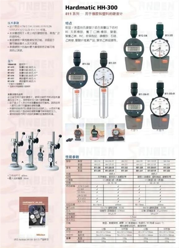 2.三丰数显/表盘硬度测量仪是根据ASTM D 2240、ISO868、ISO7619、DIN53505、JIS K6253和JIS K7215标准设计的
