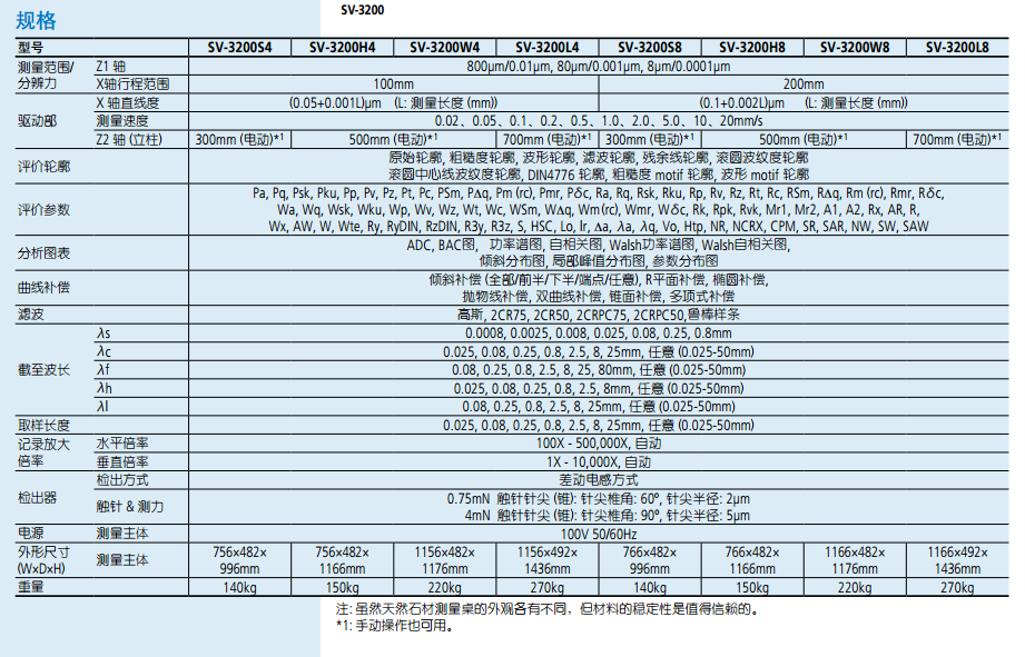 | 三丰CV-3200S4表面轮廓仪 技术参数: |