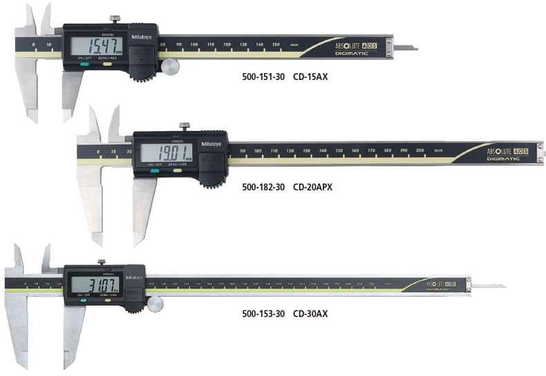 内置 ABSOLUTE 标尺意味着卡尺通电后不用设置原点就可以立即进行测量。就像用游标卡尺测量一样简单。