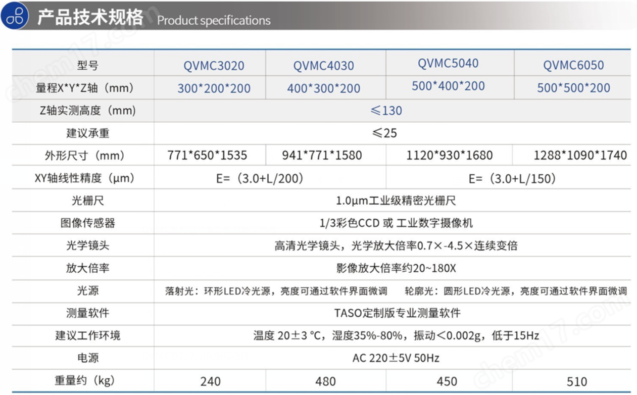 | 型号 | QVMC3020 | QVMC4030 | QVMC5040 | QVMC6050 |