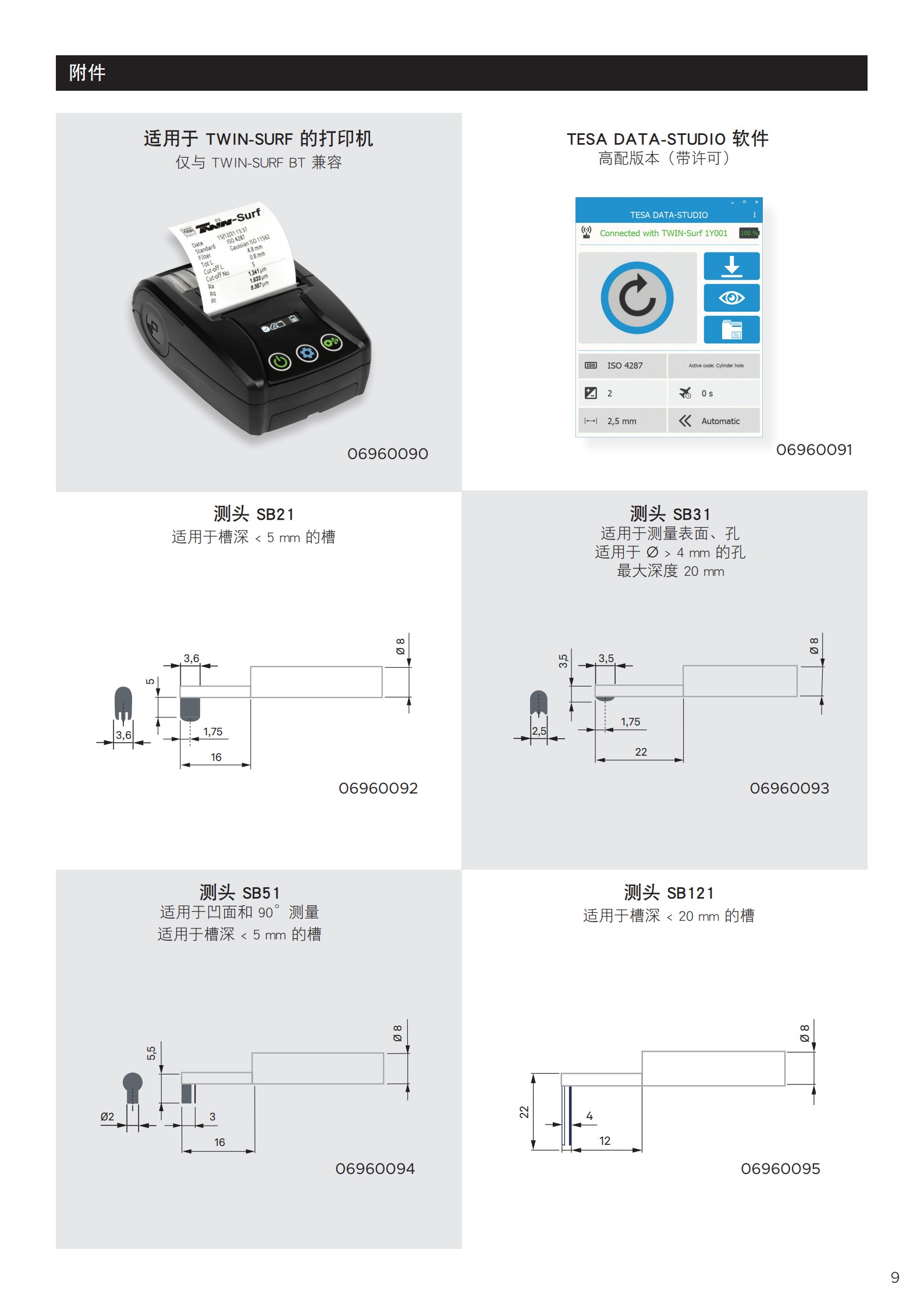 | 06960092 | SB21 测头, 用于凹槽深度 < 5 mm |