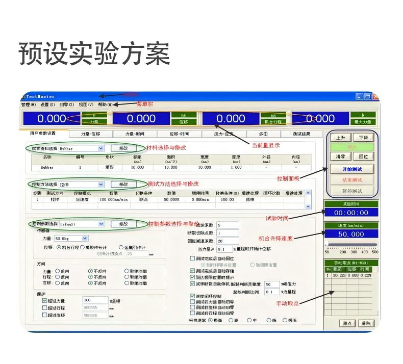 2.返回速度,拉断或压碎试样后,横梁以该速度返回,0表示试样破裂时横梁不返回