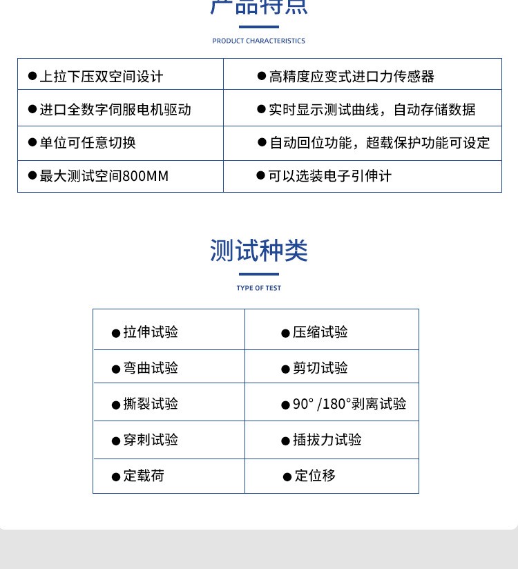 微控式电子万能试验机主机与辅具的设计融汇了我公司的*技术,外形美观,操作方便,性能稳定可靠。系统通过控制器,经调速系统控制伺服电机转动,经减速系统减速后通过精密丝杠副带横梁上升、下降,完成试样的拉伸力学性能试验,无污染、噪音低,效率高,具有较宽的调速范围。该机广泛应用于金属、非金属、建筑建材、航空航天、机械制造、电线电缆等行业的材料检验分析,是科研院校、大专院校、工矿企业、技术监督、商检仲裁等部门的理想测试设备。