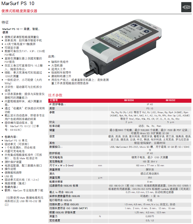 | MarSurf PS 10 | 产品编号 6910232 | |