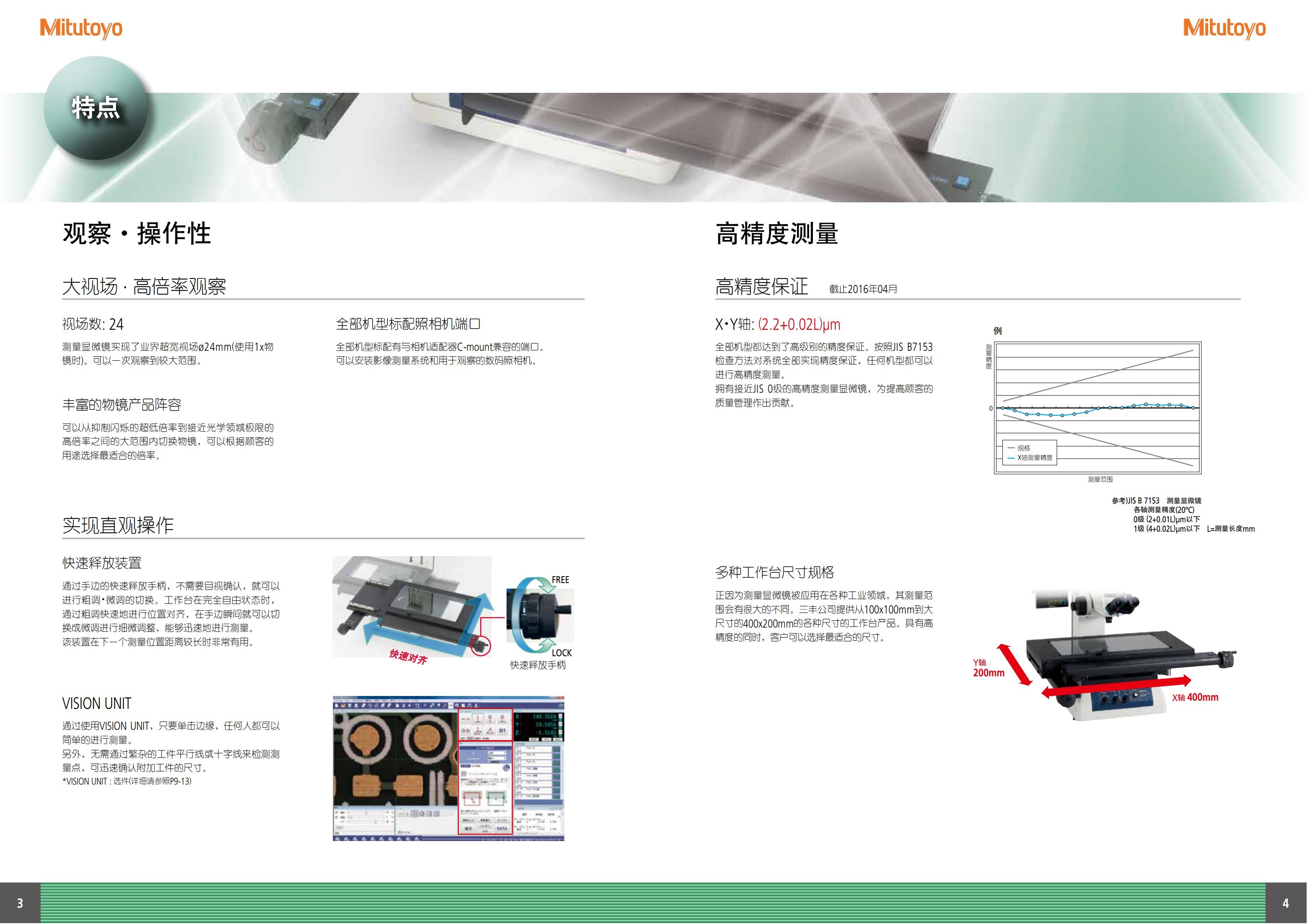 XY轴 | 测量范围 | 100×100mm | 200×100mm | 200×170mm | 300×170mm | 400×200mm |