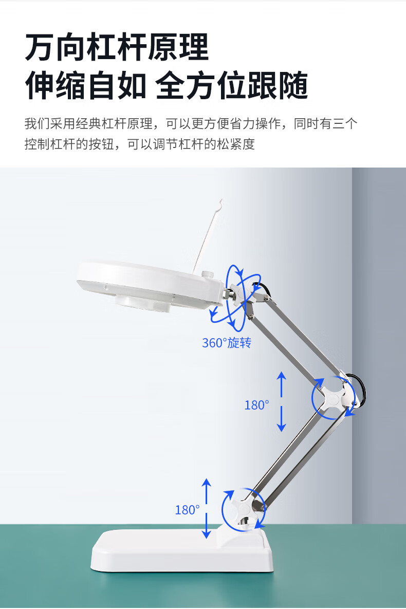 改变放大镜的方向和位置时,如果调节臂锁紧钮太紧,请稍稍放松,待调整好位置和方向后,再拧紧。千万不可强行拉动,以免损坏部件。