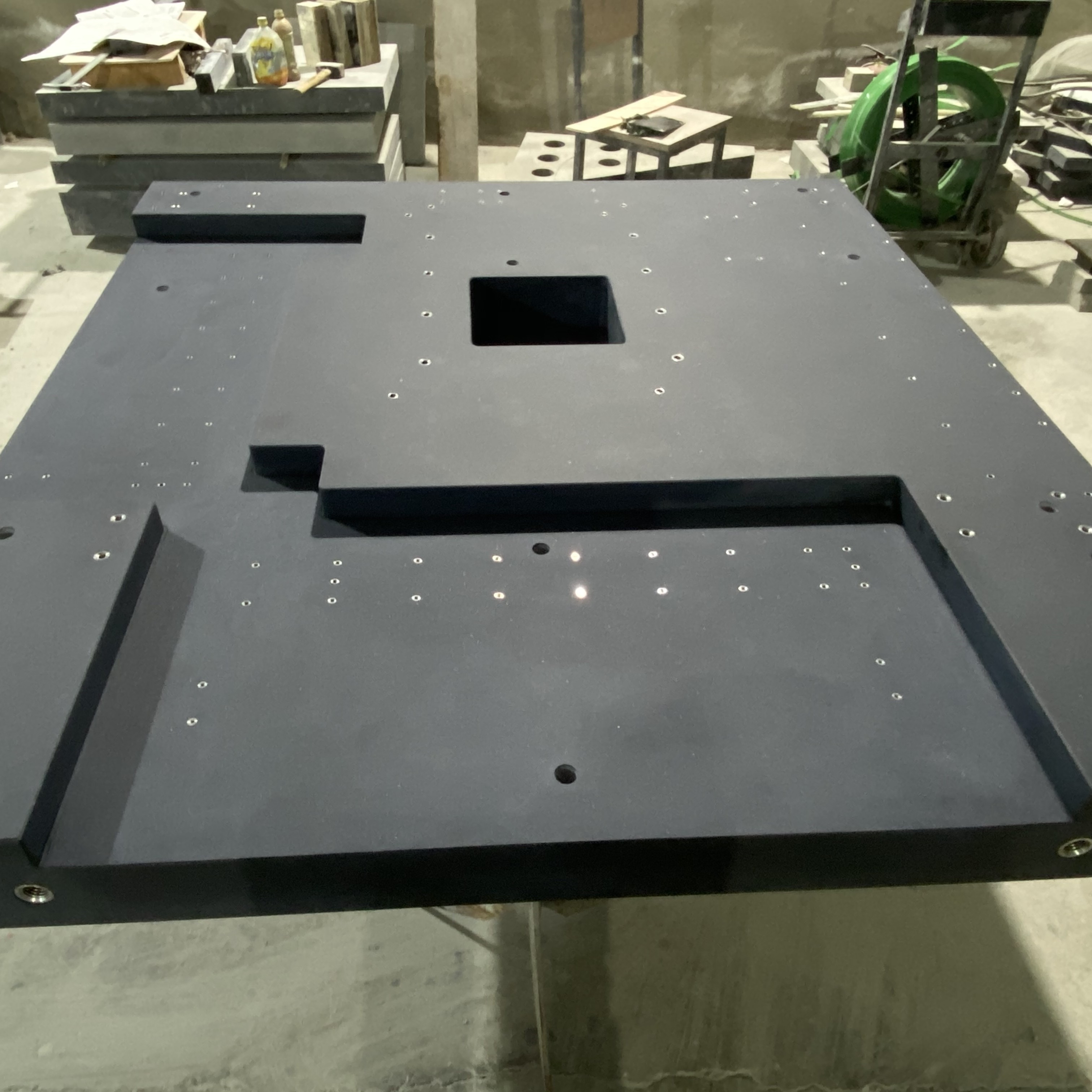 大理石构件也可以做机械试验台用途:适用于各种检验工作,精度测量用的基准平面,用于机床机械检验测量基准,检查零件的尺寸精度或行为偏差,是机械行业,也更是受广大实验室的青睐。