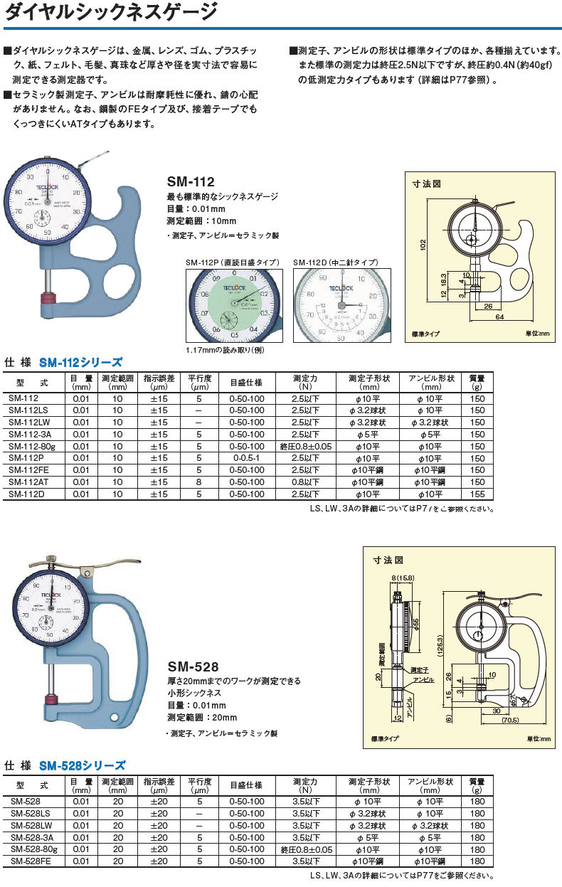 日本得乐(TECLOCK)厚度表