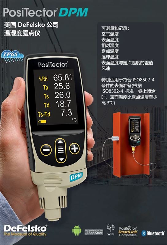 - 可以和DeFelsko公司的超声波测厚仪、涂层测厚仪、露点仪、粗糙度仪、邵氏硬度计、盐分仪共用主机