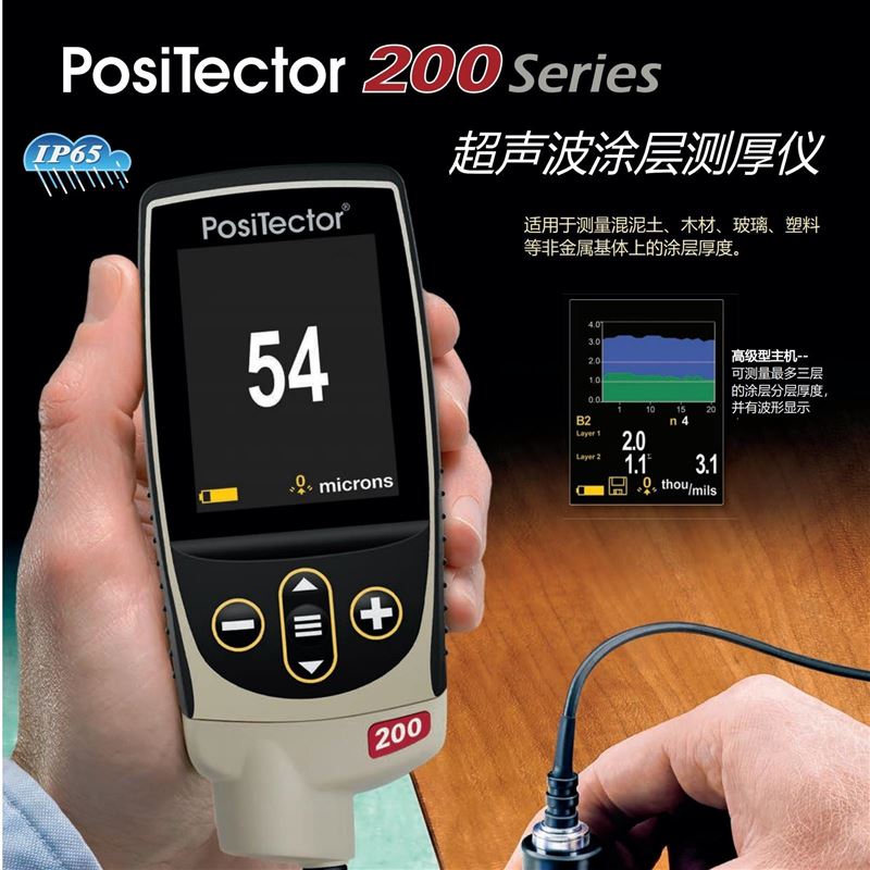 美国DeFelsko 200系列产品测厚仪是一款无损测量非金属(如木材,混泥土,沥青,塑料)上的涂层。可在同一测量点上连续显示读数,保证测量的准确性和重复性。