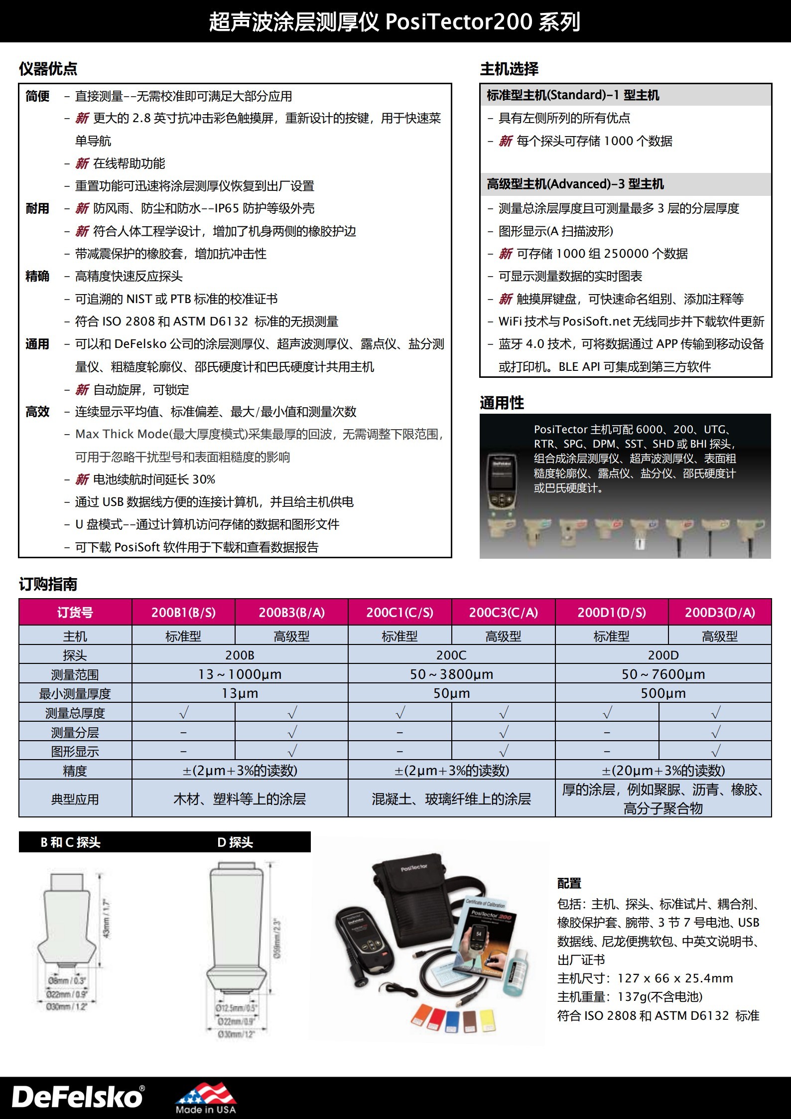 美国狄夫斯高PosiTector200D1 D3涂层测厚仪