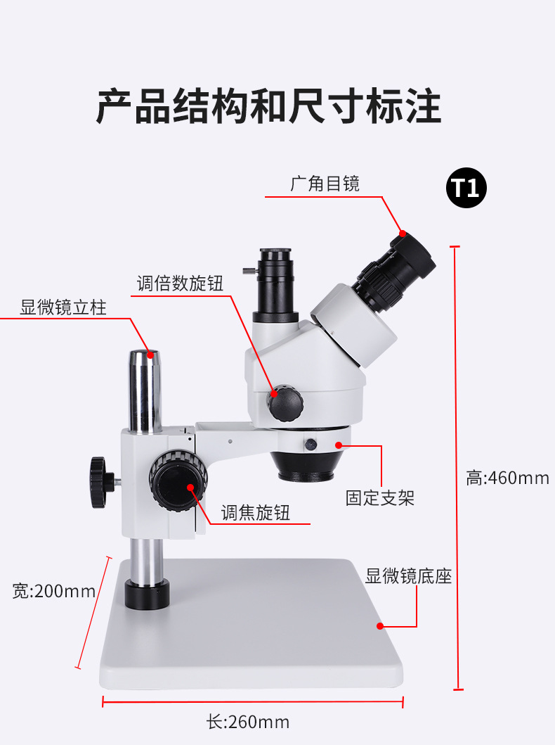 三通观察头,30°倾斜,固定式分光比(双目 :三目 =50:50),瞳距调节范围 50-76mm,固定式目镜筒,带目镜锁紧装置 | |