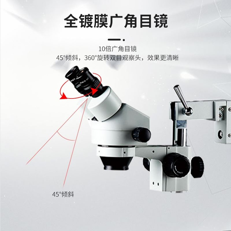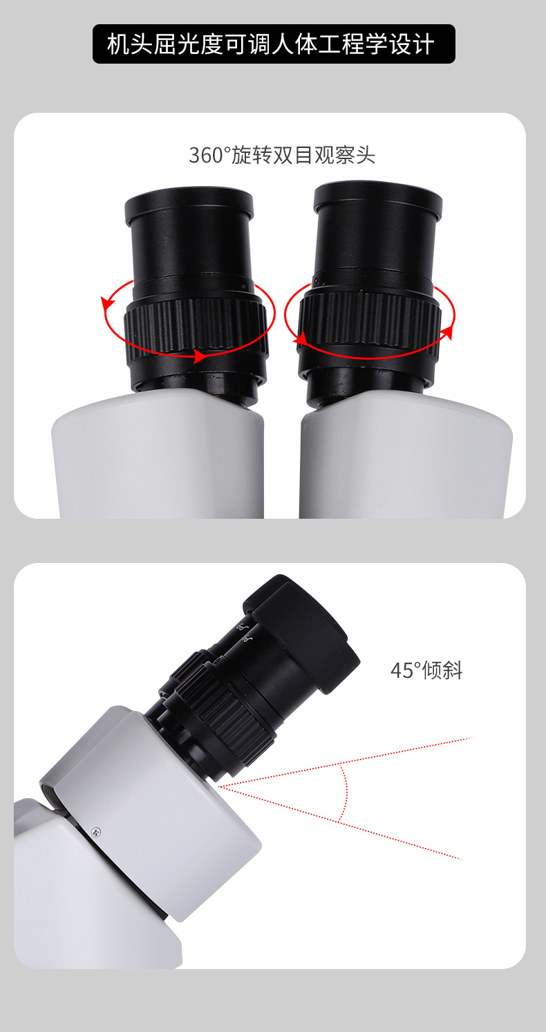 观察头 | 可调仰角三通观察头,倾角可调范围 5°~ 45°,两档光路选择( 双目或 三目),瞳距调节范围 50-76mm,固定式目镜筒,带目镜锁紧装置 |