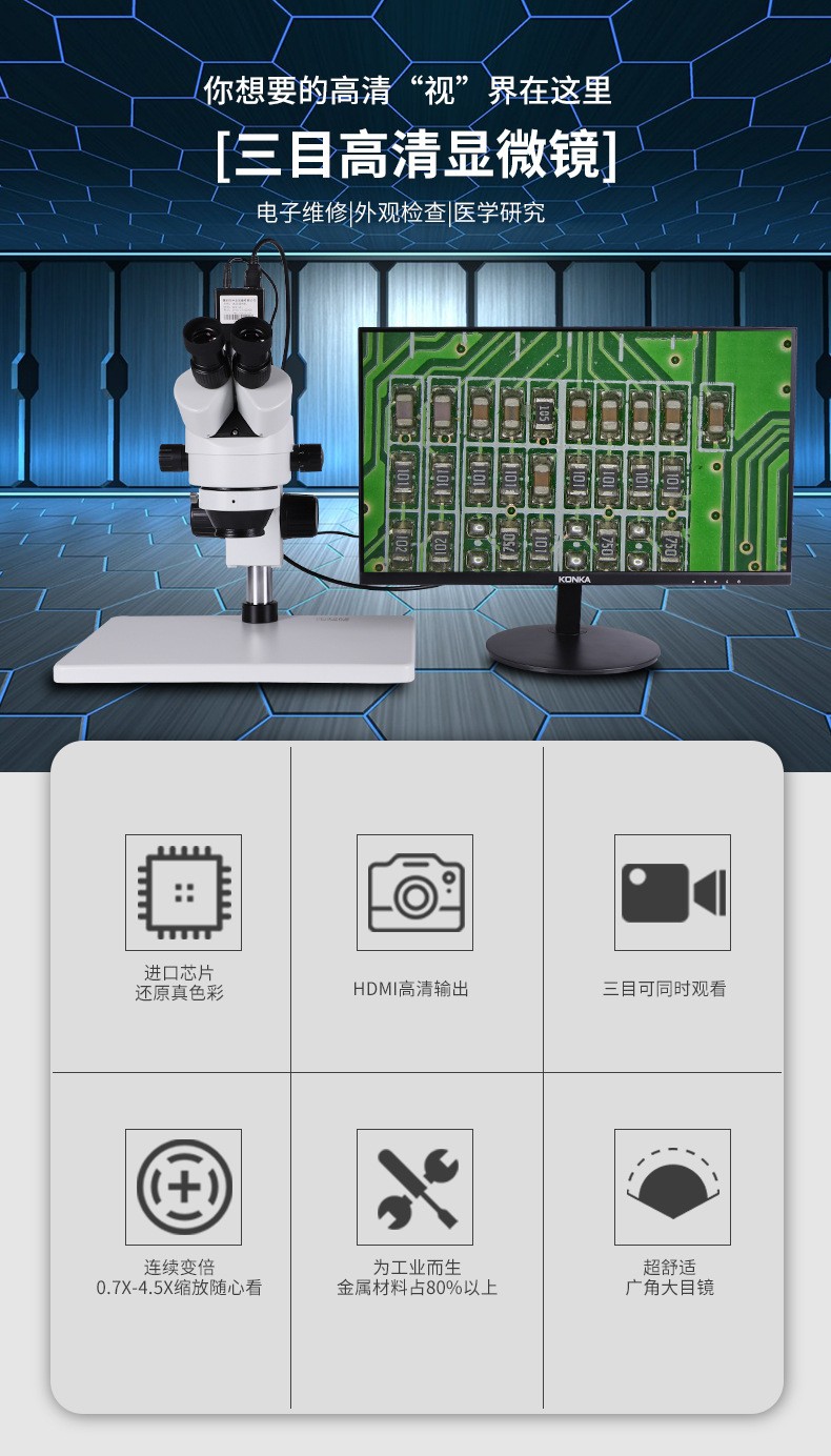 三目连续体式电子视频显微镜 SZM-7045