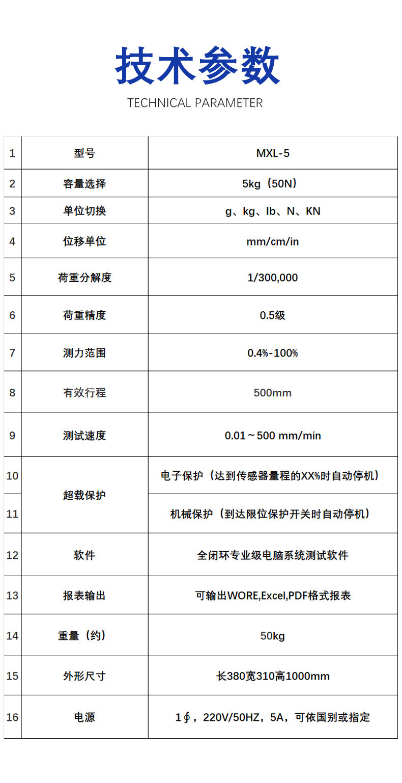 伺服电脑式桌上型拉力试验机测试过程中采用全数字化力量、位移、速度三闭环控制,采用中国台湾交流伺服马达及控制驱动系统,配合中国台湾精密蜗轮减速箱及中国台湾TBI精密滚珠丝杆传动,以达到传动效率与性噪比*效果。