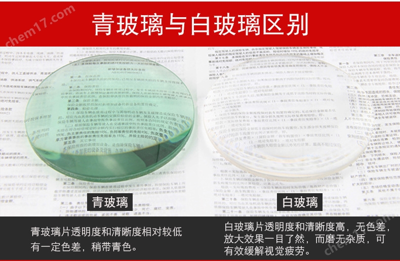 以上图片为圆形的白玻(即光学镜片)与青玻(普通镜片)的区别,具体表现为清晰度不同。光学镜片是高纯度的玻璃,所以清晰度高很多。