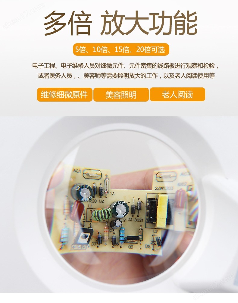 放大镜系列均设有异常状态保护,当灯管出现异常现象(灯开路,灯不启动,灯漏气)电子回路自动关机,并且一直锁定,直到关上电源解除异常现象。