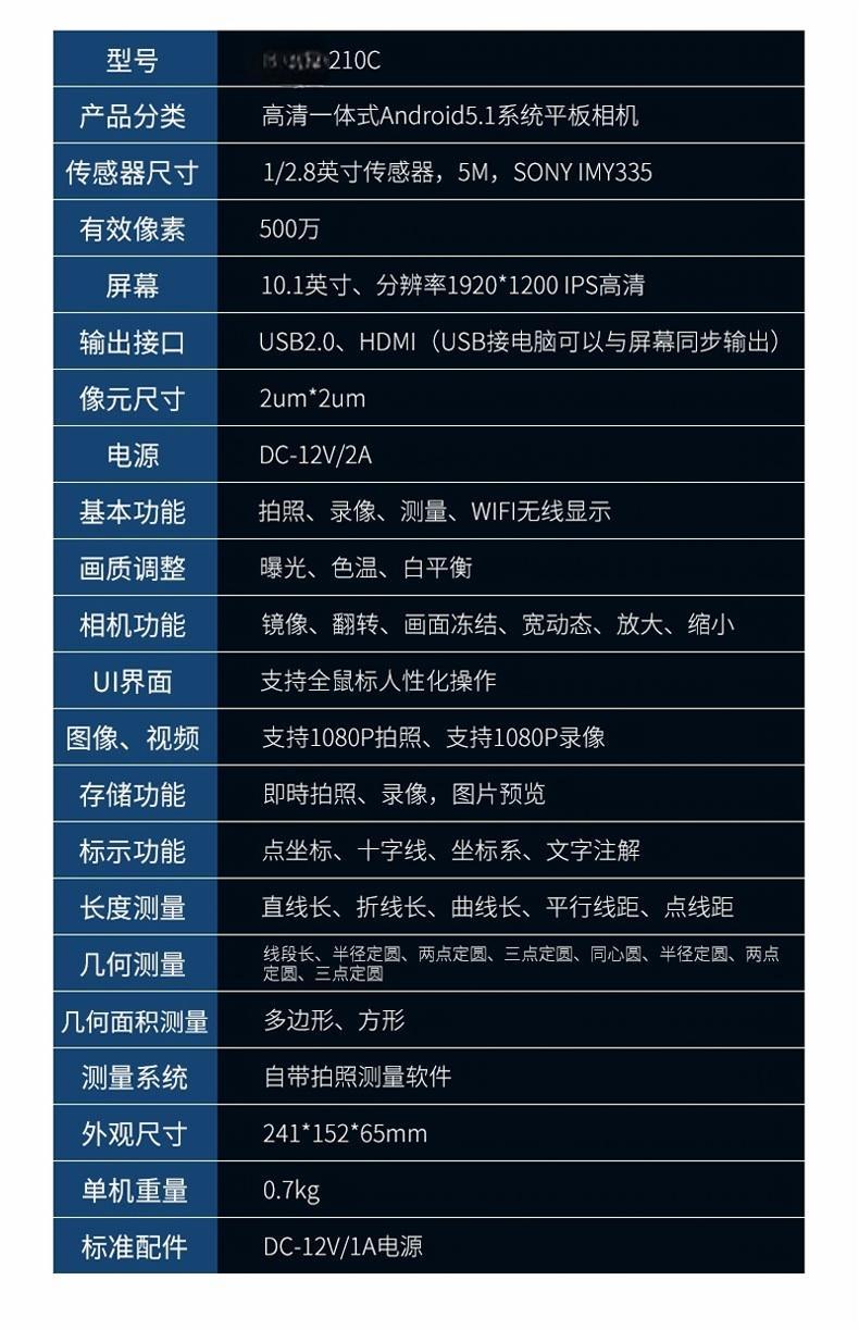 灯源 | 5W LED 灯源箱,LED 色温 5000-5500K,工作电压 100-220VAC/50-60HZ,输出 12V,外形尺寸 270×100×130mm。单光纤软管(长 500mm) |