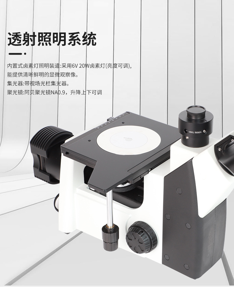 落射式柯拉照明系统,带可变孔径光栏和中心可调视场光栏,自适应宽电压100V-240V,6V30W卤素灯,光强连续可调 | |
