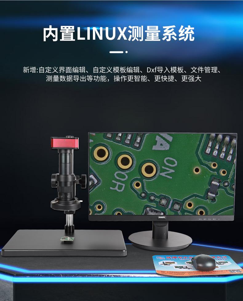 本产品适用于五金、精密元器件、连接器、刀刃、PCB电路板、FPC、纺织品、液晶屏、各种视觉工业检测、医学研究等外观检测及测量。具有成像清晰,立体感强及工作距离长,视野宽阔等特点,专门设计有多种照明装置,LED可调环形光源及荧光环形光源。无需外接电脑主机,直接连接CCD和4K高清显示器,可拍照,录像,保存,测量,导出数据,并且能准确测量出产品的尺寸(测量范围在15mm以内,分辨率为0.001mm)。