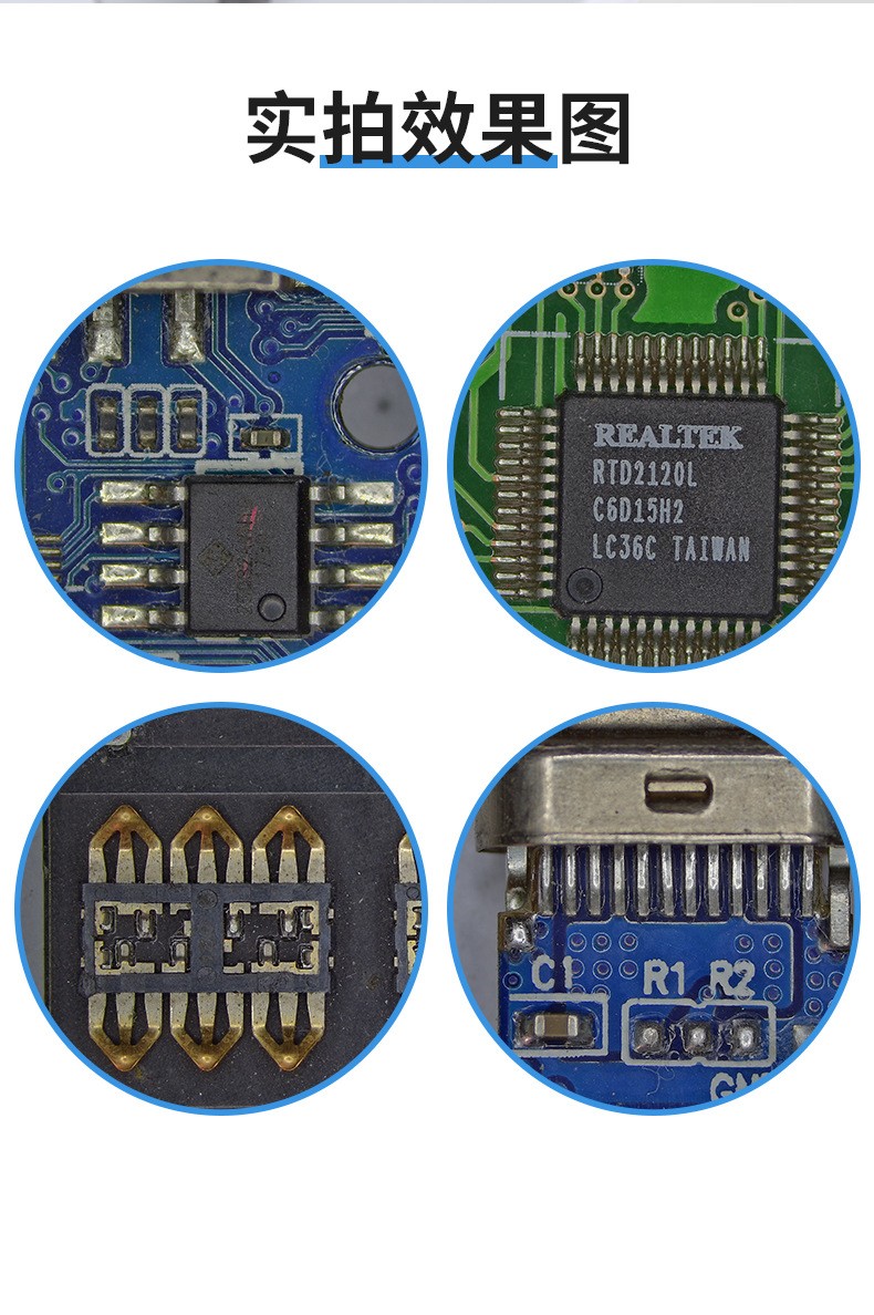 本产品适用于五金、精密元器件、连接器、刀刃、PCB电路板、FPC、纺织品、液晶屏、各种视觉工业检测、医学研究等外观检测及测量。具有成像清晰,立体感强及工作距离长,视野宽阔等特点,专门设计有多种照明装置,LED可调环形光源及荧光环形光源。无需外接电脑主机,直接连接CCD和HDMI接口高清显示器,可拍照,录像,保存,测量,导出数据,并且能准确测量出产品的尺寸(测量范围在15mm以内,分辨率为0.001mm)。