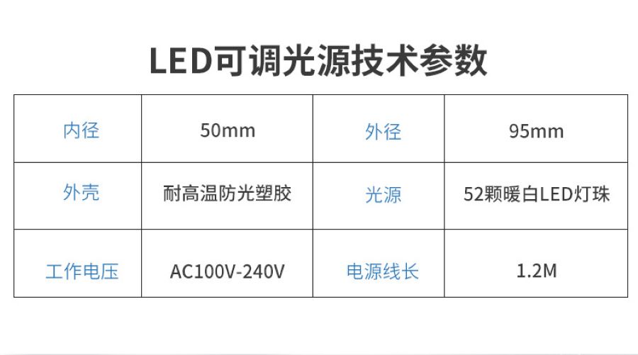 照明 | 选配各种荧光、LED环形灯,详见外接光源部件图 | |||||||