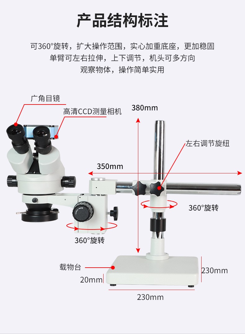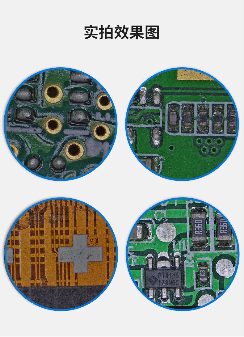 本产品适用于五金、精密元器件、连接器、刀刃、PCB电路板、FPC、纺织品、液晶屏、各种视觉工业检测、医学研究等外观检测及测量。具有成像清晰,立体感强及工作距离长,视野宽阔等特点,专门设计有多种照明装置,LED可调环形光源及荧光环形光源。无需外接电脑主机,直接连接CCD和HDMI接口高清显示器,可拍照,录像,保存,测量,导出数据,并且能准确测量出产品的尺寸(测量范围在15mm以内,分辨率为0.001mm)。