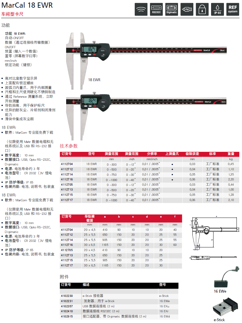 车间型卡尺 MarCal 18 EWR