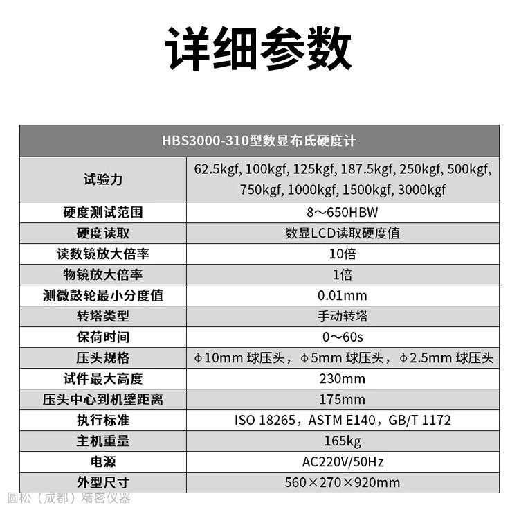 压头规格 | φ10mm 球压头,φ5mm 球压头,φ2.5mm 球压头 | |