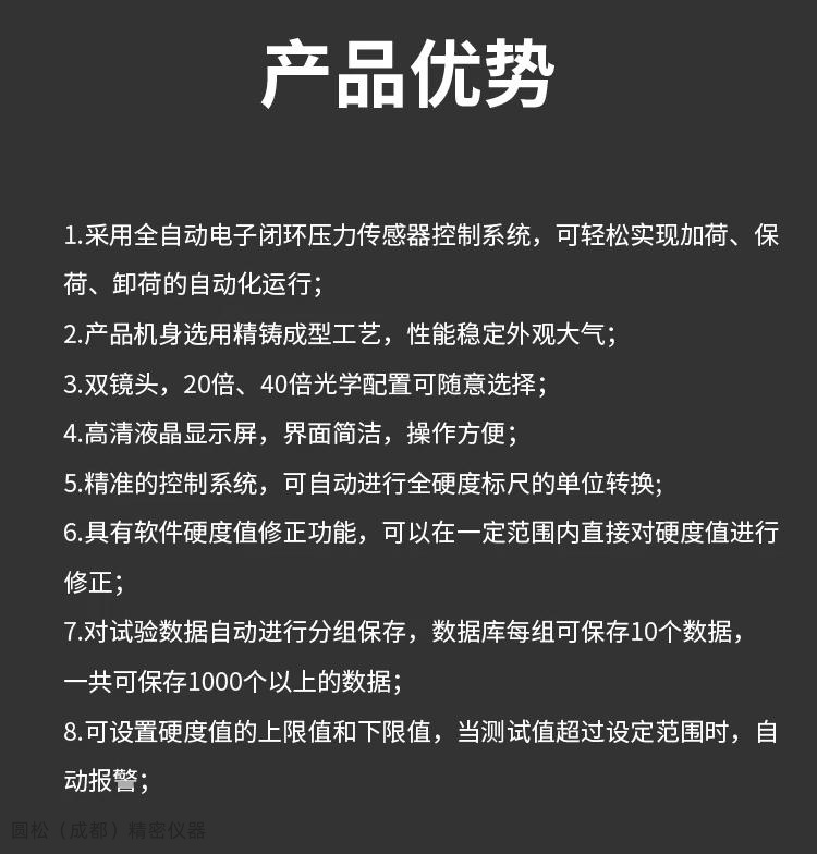 4. 精准的控制系统,可自动进行全硬度标尺的单位转换;