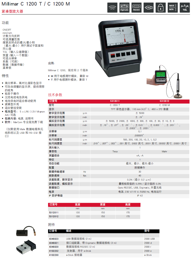 | Millimar C 1202 Metric/Inch version | 产品编号 5312025 | |
