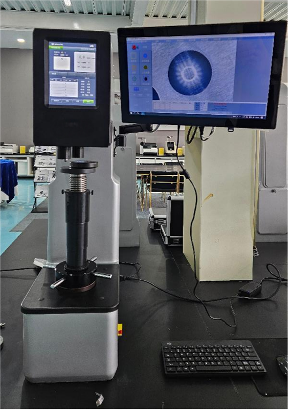 2. 自动测量:在找到清晰的被测物体表面后,按下一体机的加载键,全程自动测试, 测试结束后,系统自动测量压痕直径,得出硬度值。