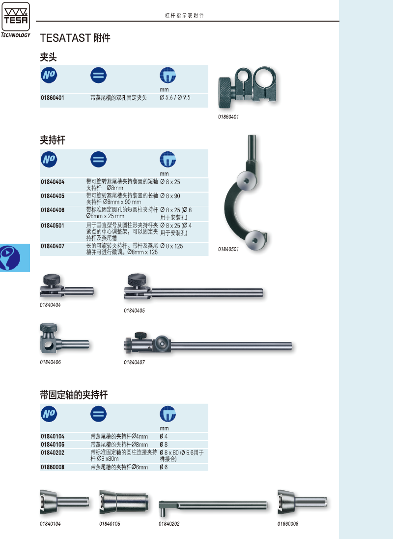 | 01810005 | TESATAST 机械杠杆指示表,标准型, 0,8 mm, 0,01 mm, Ø 28 mm |
