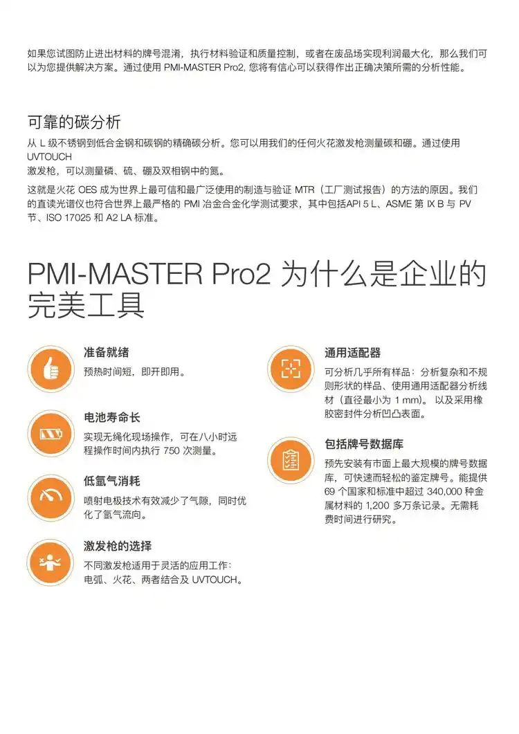 PMI-MASTER Pro2移动式光谱仪采用了新的CCD固态检测 器技术,全谱读取完整的分析光谱,代表了数码时代的新直读光谱技术。