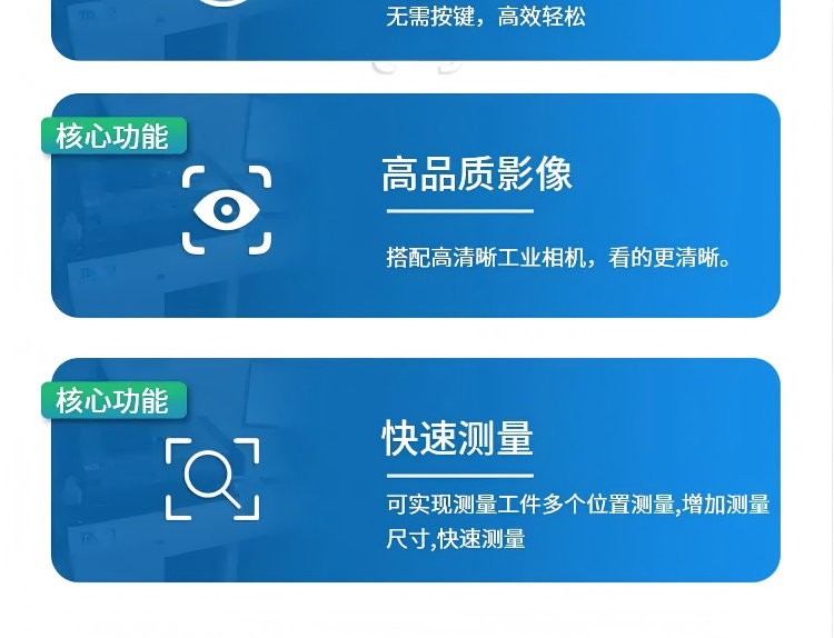 VE 系列闪测仪采用双远心光学系统,结合高精度图像拼接测量算法。能快速测量产品的平面尺寸和形位公差,测量效率是传统影像仪器的10-20倍。大视野影像闪测、高精度、全自动测量,录入测量程序后,只需把工件放置到有效测量区域,然后轻轻按一键测量,自动匹配测量。