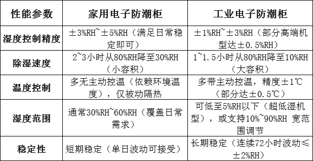 两类防潮柜的设计初衷匹配不同场景的存储需求,直接决定了后续所有性能差异。