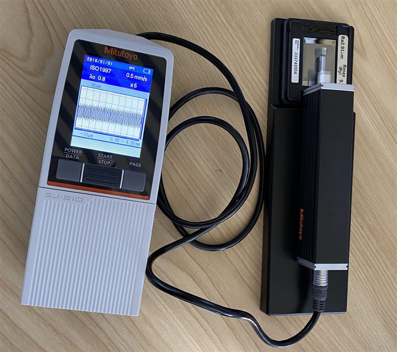 (1)将精密粗糙度样板(标准块)放置于校准台上,安装好SJ-210,将探头置于标准块上。