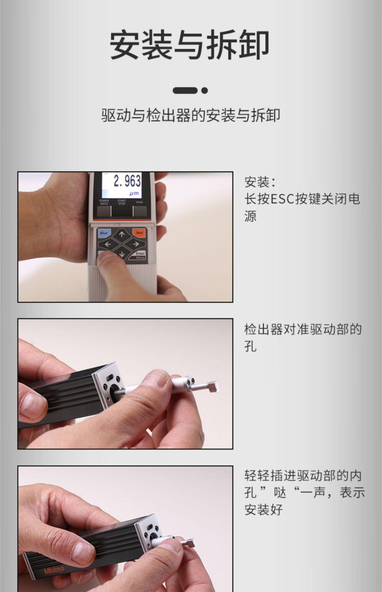 ●牢牢固定驱动装置和工件牢固地固定他们以防止测量过程中驱动装置偏离,特别是将SJ-210与高度规连接配合使用的时候。