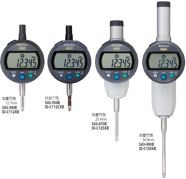543-394B | 12.7 | 0.001 | 0.003 | 0.4N-0.7N | ISO/JIS型,公制型,平型后盖,低测力 |