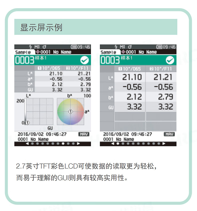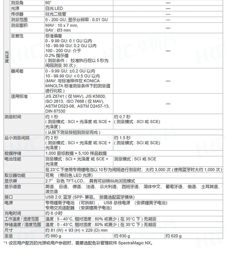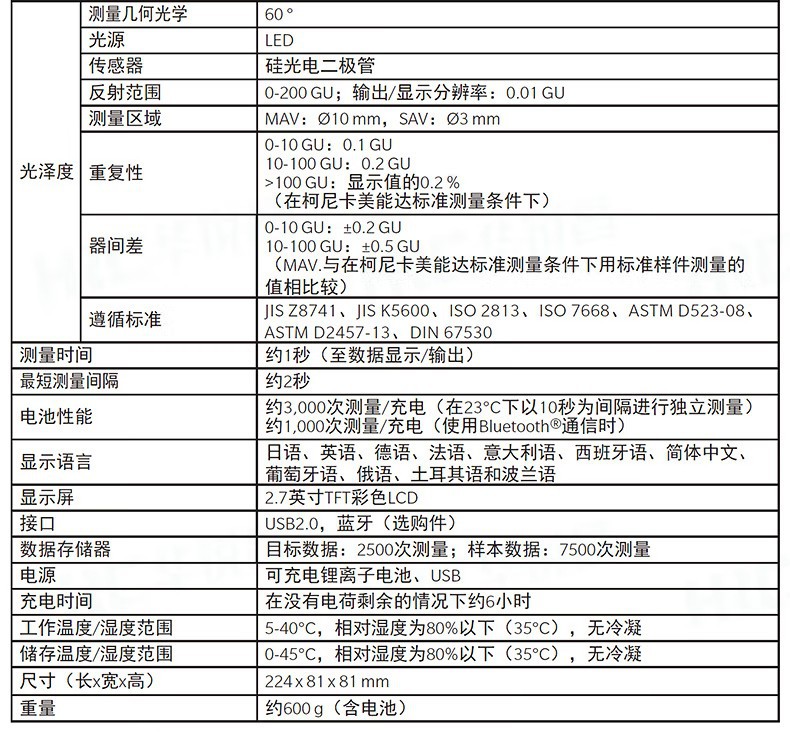 45°c:0°几何光学结构,可进行光泽度测量和光学样品预览
