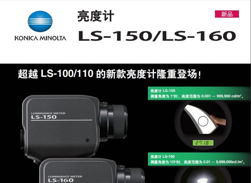 用户可使用LS-150 / 160保证较小亮度,在出现任何质量或安全问题前更换光线减弱的灯泡,或将质量保证纳入灯泡制造中。还可间接检查包括投影屏幕、效果和显示照明在内的被照射对象。此仪器的尺寸和便携性可让用户在需要测量的任何场所进行操作。