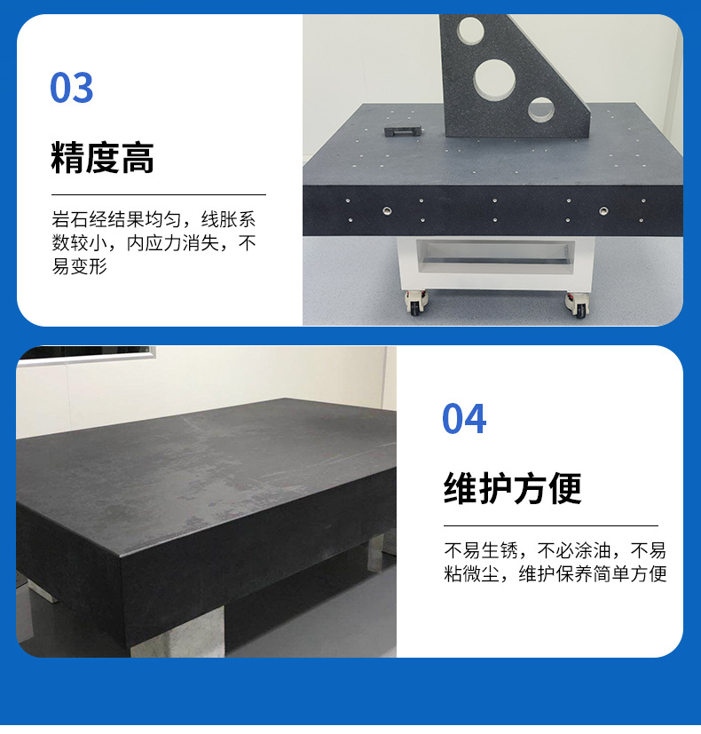 大理石平台取材於地下优质的岩石层,经过亿万年自然时效,形态极为稳定,不用担心因常规的温差