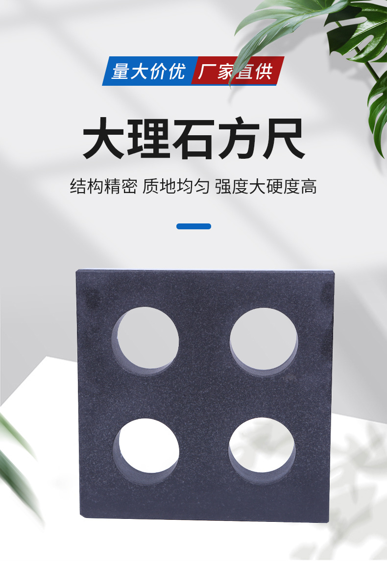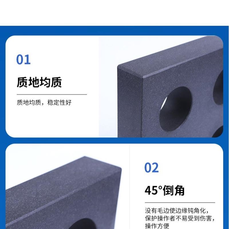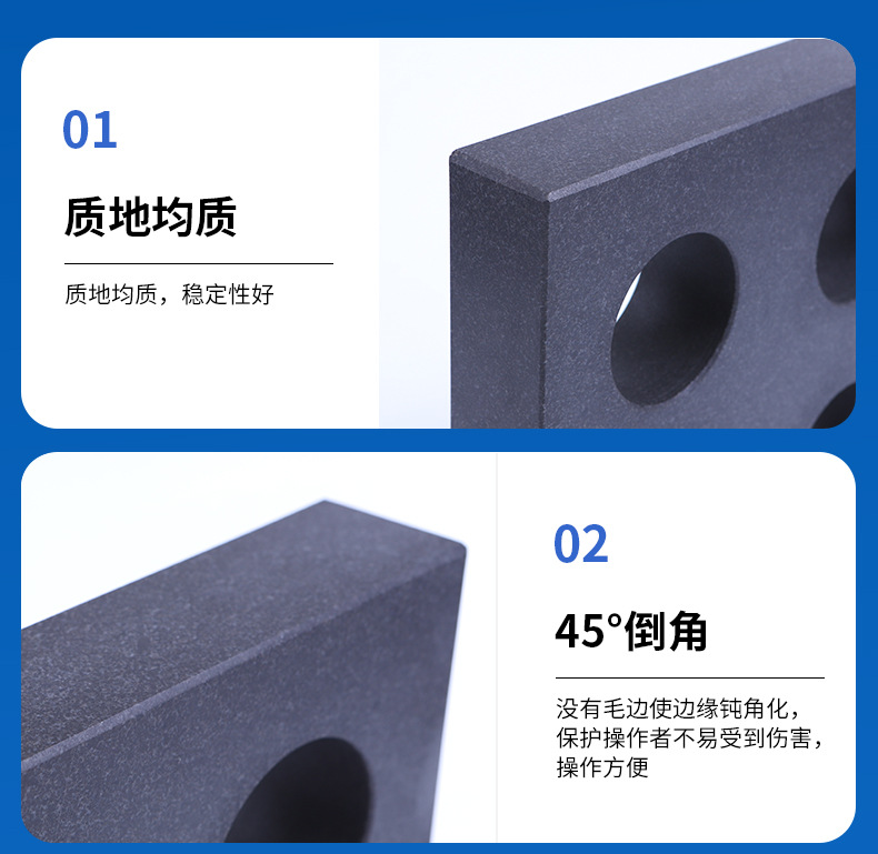 花岗石平板是用天然的石质材料制成的精密基准测量工具,对仪器仪表、精密工具、机械制件的检验,都是理想的基准面。特别是用于高精度的测量方面,由于它得天独厚的特性,而使铸铁平板相形见拙。花岗石取材于地下优质的岩石层,经过亿万年自然时效,形态极为稳定,不用担心因常规的温差而发生变形。经严格物理试验和选择的花岗石料,结晶细密,质地坚硬,抗压强度达2290-3750公斤/平方厘米,硬度达莫氏硬度6-7级。极耐磨损、耐酸、耐碱,有很高的耐腐蚀性,永远不会生锈。由于花岗石系非金属材料,*磁性反应,也无塑性变形。其硬度比铸铁高2-3倍(相当于HRC>51),因此精度保持性好。在使用中岩石工具即使遭重物磕碰,至多掉几粒石碴而已,而不会像金属工具那样,因变形而破坏精度。其优于优质铸铁和钢材制作的精密测量基准零件,可以获得高而稳定的精度.