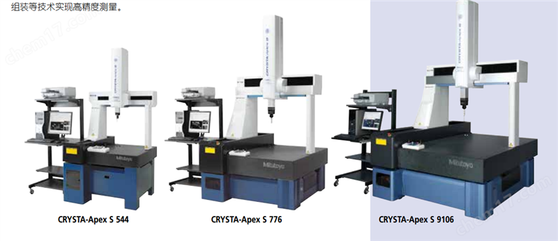 • CRYSTA-Apex S500/700/900系列是实现了高 精度(1.7µm)、高速度和高加速度的CNC三坐 标测量机。本系列有适合不同工件尺寸的多 种型号,使测量更具灵活性。