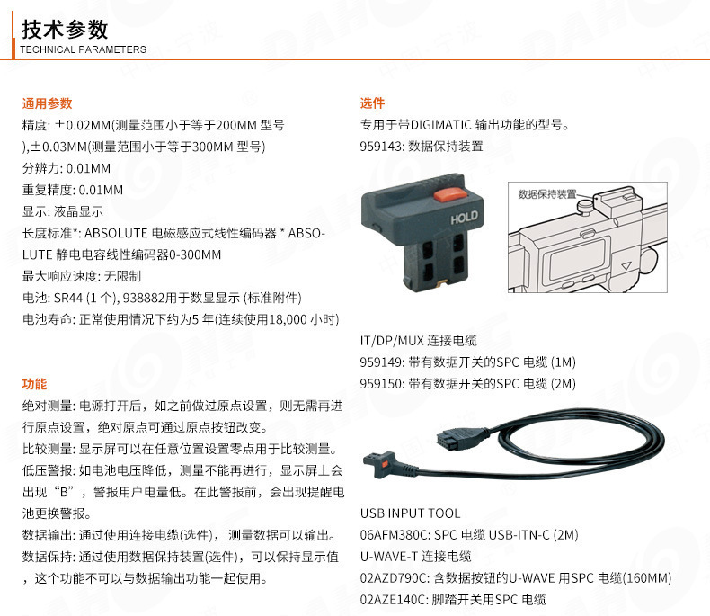 精度: ±0.02mm (测量范围小于等于200mm 型号)