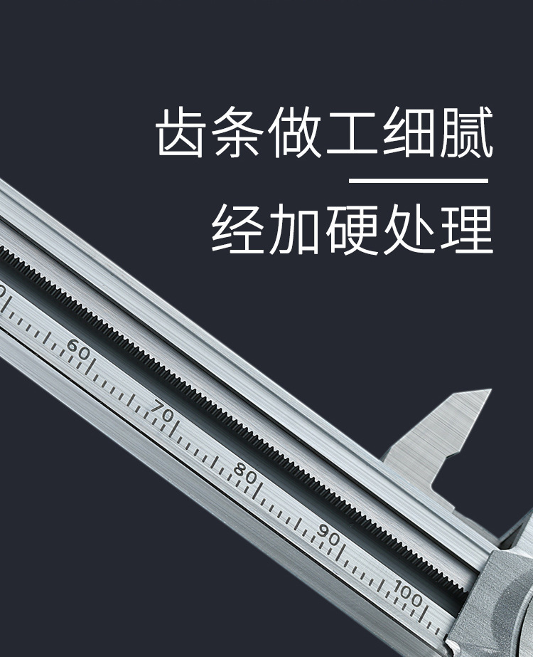 ●通过齿条和小齿轮的装置进行读数的卡尺。