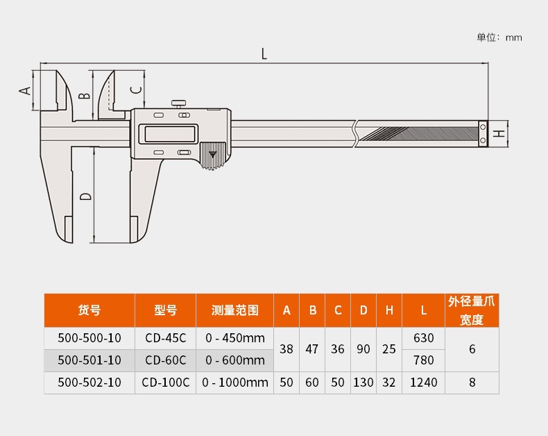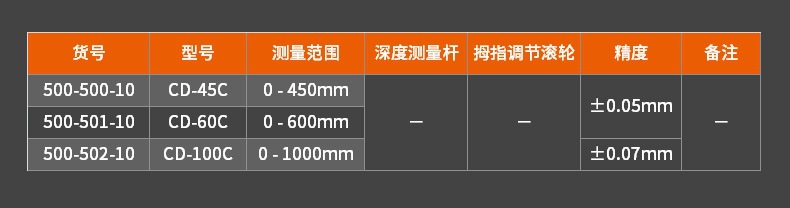 精度: ±0.02mm (测量范围小于等于200mm 型号)