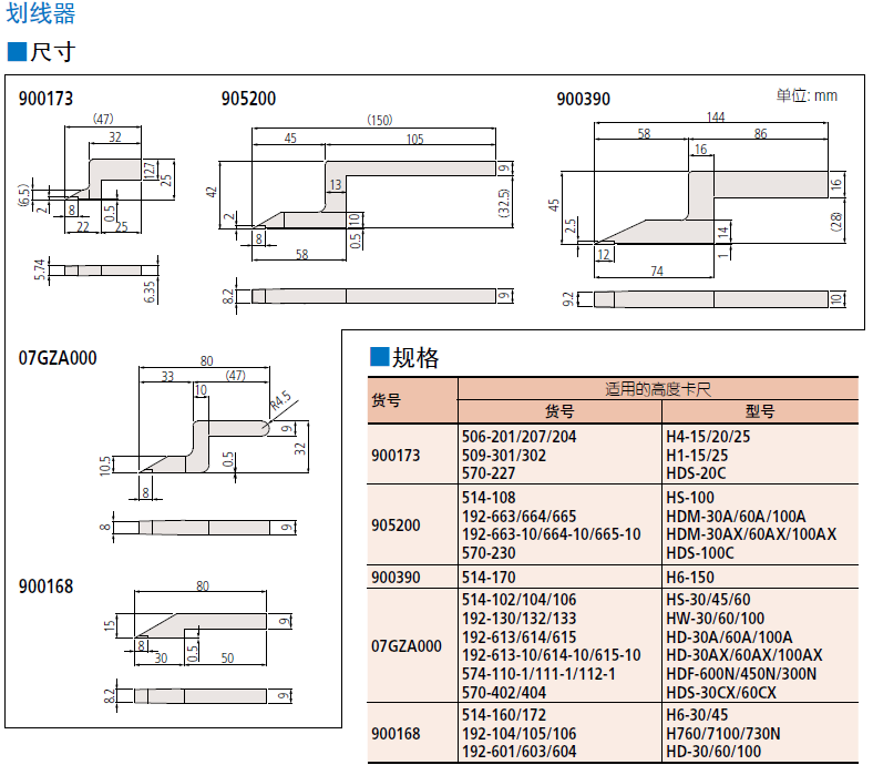 ● 标配中附有硬质合金划线器(No.07GZA000)(标准附件:划线器夹钳 No.05GZA033)