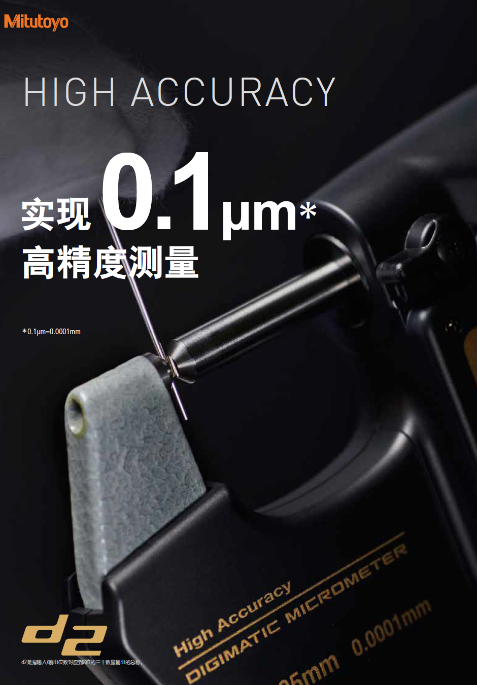 1.本款千分尺分辨力为0.1um,是需要用手持式工具进行高精度测量顾客的选择。·高精度的数显干分尺,采用日本三丰公司0.1um分辨力ABS(旋转传感器和高精度螺纹加工技术,将误差降低到±0.5um,从而在不牺牲可操作性的前提下提高测量的准确性。